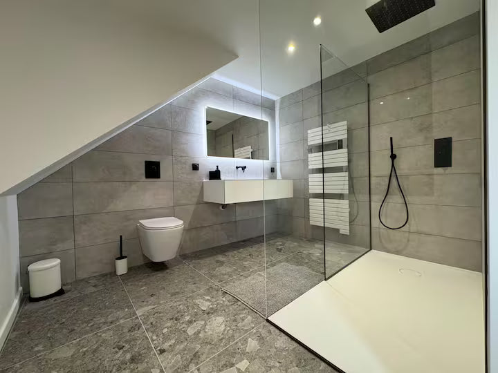 La salle de bain a été pensée comme un véritable espace de bien-être, alliant confort, fonctionnalité et esthétisme.